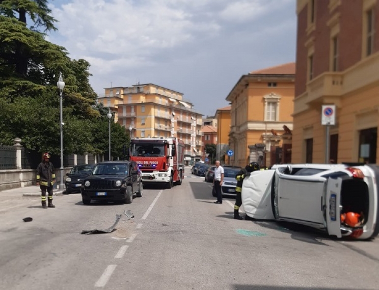 Incidente stradale nel pomeriggio di ieri in viale Giacomo Matteotti, nel centro urbano di San Severino Marche, all’altezza dell’ingresso del giardino pubblico “Giuseppe Coletti”.