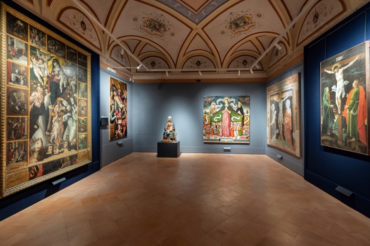 L’affollamento di opere, il ricco archivio, la ripetizione dei soggetti, la serialità (decine di Annunciazioni, decine di Deposizioni, decine di Crocifissi dal materiale pesante) alimentano nello spettatore la sedimentazione della memoria lavorando sul margine del residuo, sul deposito dell’immateriale, in ultimo sulla trascendenza della religione.