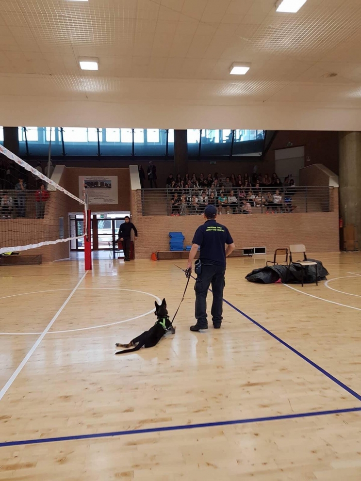 Ai Licei di Camerino, nell'ambito del progetto Alternanza Scuola-Lavoro, l' unità cinofila della Protezione civile di Sefro ha proposto agli alunni delle classi quarte attività teoriche ed esercitazioni pratiche inerenti la ricerca di dispersi a seguito delle calamità naturali.