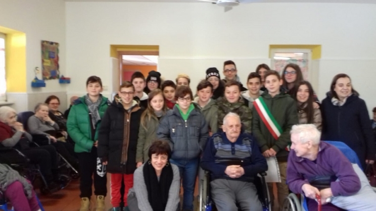 Il consiglio dei ragazzi di Castelraimondo ha portato gli auguri ai nonnini