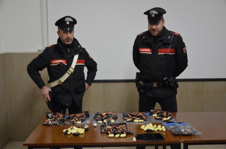 Avevano nascosto oltre due chili di eroina in ovuli all'interno delle bustine dei mini Mars. Beccati tre uomini dal Reparto Operativo comandato dal tenente colonnello Walter Fava e dalla Compagnia di Macerata (coadiuvati dalla stazione di Porto Recanati e dal Norm di Civitanova) agli ordini del maggiore Roberto De Paoli. L'attività è stata condotta ieri, nel pieno delle feste natalizie: numerosi sono stati i controlli su strada effettuati dalle pattuglie dell’Arma, con 130 persone controllate, e 3 arresti effettuati con un maxi sequestro di eroina pura, oltre due chili. Il servizio ha richiesto l'impiego di 30 Carabinieri e diversiposti di controllo per monitorare l’area compresa tra la città di Macerata e la costa civitanovese fino a Porto Recanati.