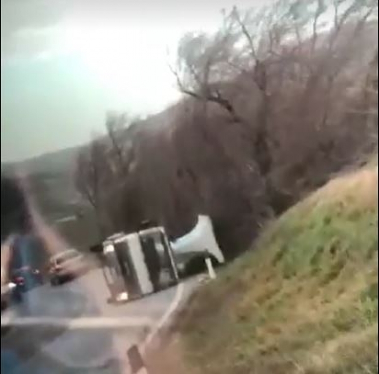 Vento forte, si ribalta un camion