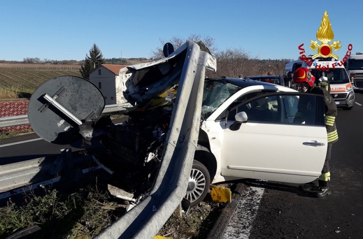 Una Fiat 500, condotta da un padre 37enne, è andata a sbattere contro il guard rail spartitraffico dell'uscita della superstrada. Le cause dell'incidente sono in corso di studio da parte del personale dell'Aliquota Radiomobile che è intervenuta sul posto, con l'ausilio dei militari della Stazione di Belforte del Chienti che hanno provveduto alla viabilità lungo la superstrada. A bordo del mezzo altre all'autista, anche suo figlio di due anni. Entrambe le vittime dell'incidente sono state trasportate all'ospedale di Macerata per gli accertamenti del caso ma non sembra che siano in cattive condizioni di salute. La macchina, al contrario, si è letteralmente distrutta all'impatto con il guard-rail. Elemento fondamentale per la salvezza del bambino è stata la presenza del seggiolino ed il fatto che il bambino sia stato regolarmente agganciato al sistema di ritenuta.