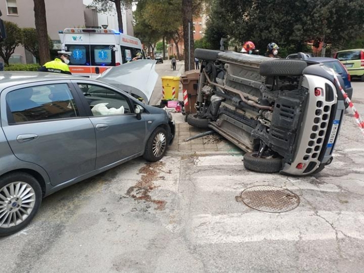 Una Fiat Punto, condotta da un 85enne tolentinate, mentre procedeva in viale Benadduci direzione Palazzo Europa, si è scontrata per cause in corso di accertamento con una Fiat Panda, condotta da una tolentinate di 75 anni, che arrivava da via Santini, all’altezza del Bar dell’Angolo. Dopo lo scontro la Fiat Panda è salita su un marciapiede, ribaltandosi su un fianco.