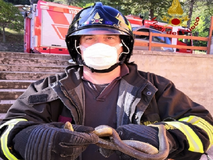 Vigili del fuoco catturano e liberano una biscia nascosta in casa
