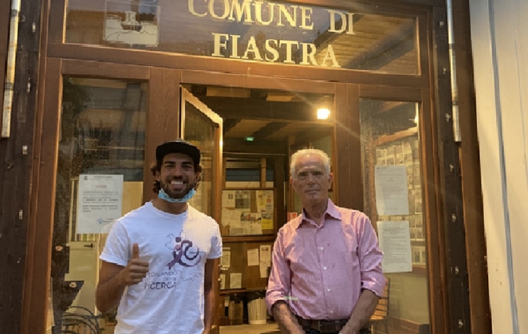 Ieri sera il consigliere Vanis Rossetti ha accolto a Fiastra Alessandro Mucci, giovane triatleta torinese che sta attraversando il centro Italia in bicicletta per raccogliere fondi in favore della ricerca contro il cancro. Alessandro è partito il 29 giugno da San Donato in Val di Comino, località della Ciociaria dove concluderà, tra qualche giorno, il suo ampio giro ad anello toccando le località del centro Italia martoriate dai terremoti, i grandi gruppi montuosi dell'Appennino Centrale e i borghi dei circuiti turistici più importanti del nostro paese: le Bandiere Arancioni e i Borghi più belli d'Italia.