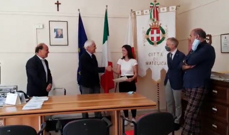 E’ di Katerina Vrioni il miglior diploma scolastico conseguito nell’anno all’Istituto Tecnico ad indirizzo economico di Matelica. Il suo impegno è stato premiato con la consegna di una borsa di studio da parte di Giovanni Ciccolini, patron dell’azienda Halley informatica. La cerimonia si è tenuta questa mattina nella sede comunale di Matelica, alla presenza del sindaco Massimo Baldini, dell'assessore alla cultura Giovanni Ciccardini, del dirigente scolastico Francesco Rosati che ha portato i saluti del Rettore di Unicam Claudio Pettinari e, di alcuni docenti. Istituita lo scorso 21 dicembre 2019 in occasione del felice traguardo del mezzo secolo di fondazione dell’Istituto di Matelica, la borsa di studio “Halley informatica” del valore di 1500 euro ha così raggiunto la sua finalità e la sua destinataria, la giovane Katerina Vrioni, neodiplomatasi con 100 e lode. Un premio quello del patron della Halley Giovanni Ciccolini che si aggiunge alle tanti azioni filantropiche portate avanti nel tempo dall'azienda, questa volta con lo spirito di testimoniare l’importanza dell’investimento sui giovani, sulla loro cultura e formazione, con la dichiarata volontà di incrementare una collaborazione sempre più proficua tra mondo della scuola e mondo del lavoro. In primo piano nel suo intervento, anche la necessità di accrescere le potenzialità di un approccio filosofico all’interno delle sedi scolastiche, in modo da offrire ai ragazzi sempre maggiori spunti di costruzione identitaria e una forte base culturale di crescita anche nel lavoro.