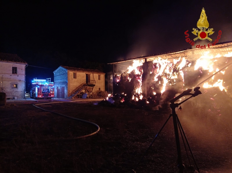 Sono ancora al lavoro i vigili del fuoco per un incendio divampato ieri sera a Recanati lungo provinciale 61 in via Sambucheto, per l'incendio di un fienile di circa 160 metri quadrati con 400 quintali di paglia e fieno.