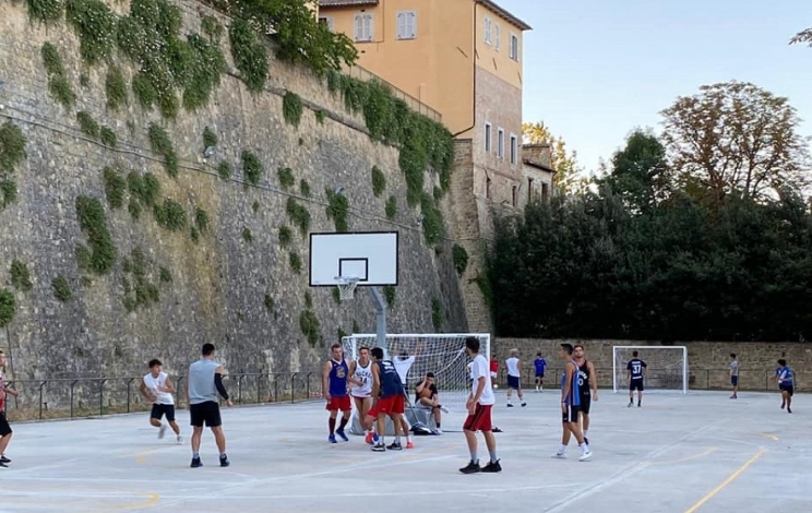 A Camerino, si rinnova l'area di aggregazione e sport ex Gioco del pallone. Nuovi canestri e porte sul campetto comunemente usato da tanti giovani e restyling di tutta l'area dotata anche di nuovo impianto di videosorveglianza. Prevista domenica 27 settembre alle ore 10.00 l'inaugurazione di “Sotto le piante”, il cui rinnovamento è stato reso possibile dalla generosa donazione di un gruppo di ragazzi di Ancona che ha raggiunto la città ducale attraverso l’intermediazione di Paola Gerini. In ricordo del loro amico Francesco Marcianesi, prematuramente scomparso, i ragazzi anconetanti hanno espresso infatti il desiderio di dedicare uno spazio ai giovani di Camerino. Proprio in memoria di Francesco Marcianesi è stata realizzata una targa, donata dalla ditta G.E.O.F. Onoranze Funebri di Elisei Giuseppina.