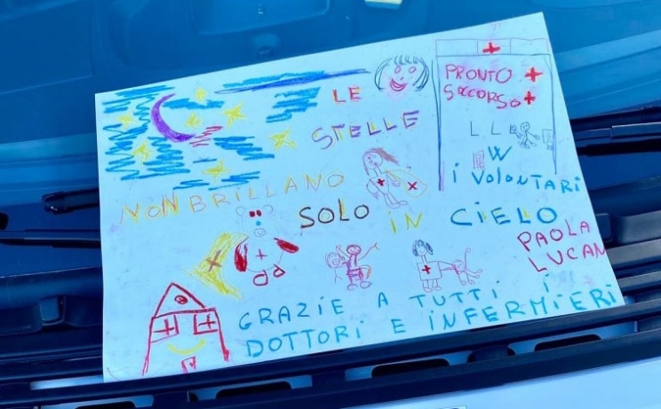 Essere in prima linea con un disegno come quello di Paola nell'ambulanza darà sicuramente una forza in più agli operatori che continuano a lavorare incessamente nonostante le difficoltà.