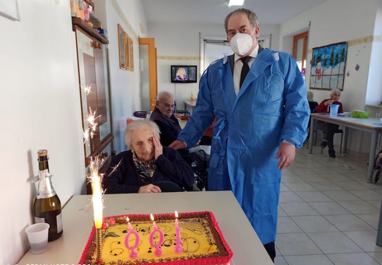 Venerdì, 08 Gennaio 2021 10:17 | Letto 912 volte Clicca per ascolare il testo Penna San Giovanni, Maria Montecchiarini spegne 100 candeline A dimostrazione che nei piccoli borghi l’elevata qualità di vita rende più longevi, nel Comune di Penna San Giovanni si festeggia un’altra centenaria, è la signora Maria Montecchiarini, ospite della Casa si Riposo “Burocchi”.La signora Maria, è madre di tre figli e ben 5 nipoti e una pronipote. Forte e determinata si è conquistata il simpatico appellativi di “maresciallo” per il suo carattere deciso che continua a mantenere anche nella casa di riposo. Nella sua vita ha affrontato momenti difficili, come nel suo lavoro sui campi, ma ha sempre superato ogni ostacolo con caparbietà.Il 12 gennaio quindi grande giorno di festa per Maria e tutta la sua famiglia.Agli auguri si aggiungono anche il sindaco di Penna San Giovanni, Stefano Burocchi che ha voluto omaggiare la combattiva centenaria con una sensazionale torta, così come tutti gli altri ospiti della Casa di Riposo, il personale della struttura aderente alle Cooperative Sociali Medihospes, Pars e Cascina insieme alla coordinatrice Silvia Impagnatiello.