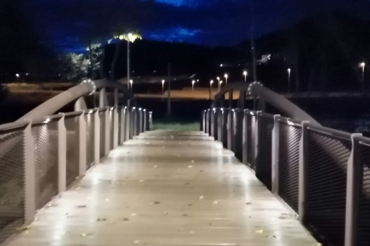 Taglio del nastro uffciale per il Ponte dell'Amicizia di Muccia, passerella pedonale sul fiume Chienti che collega le due aree Sae e l'area commerciale.