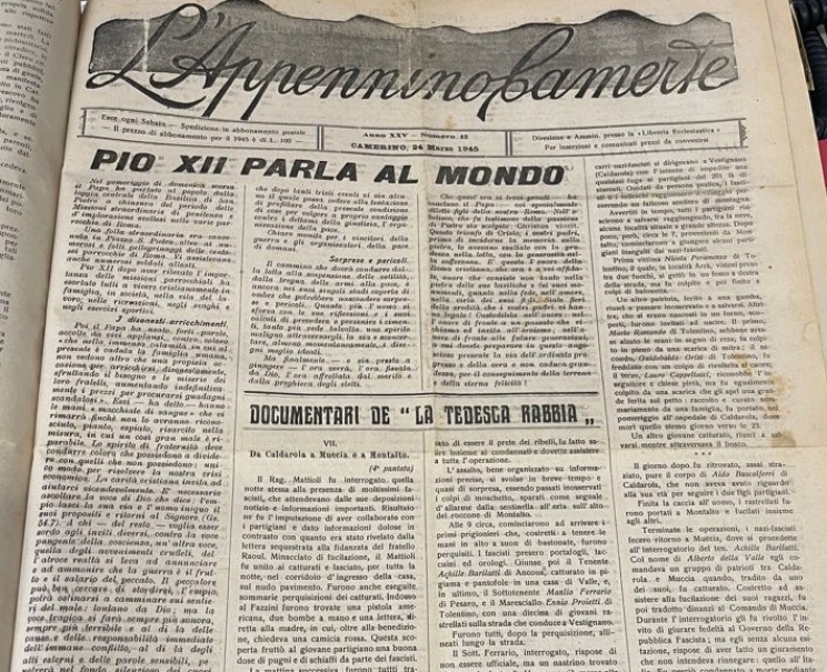 Una premessa che ci permette di percepire come il tempo sia trascorso tra le pagine di questo settimanale ed anche nella nostra memoria. Perchè se oggi, per noi, l’eccidio di Montalto è storia ed i fatti che lo caratterizzano sono arrivati fin qui tramite il passaggio di eredità tra più generazioni, il cronista di quell’Appennino Camerte potè trattare quella tragedia come noi oggi raccontiamo i fatti quotidiani di cronaca; erano contemporanei come per noi i racconti del sisma e della pandemia. Due guerre diverse rispetto a quella del 1944, ma che ci ricordano come potrebbero restare nella storia. E’ possibile che tra cento anni, qualche giornalista, riprenda le pagine di questo longevo settimanale per scoprire come i suoi predecessori hanno raccontato questi difficili momenti.