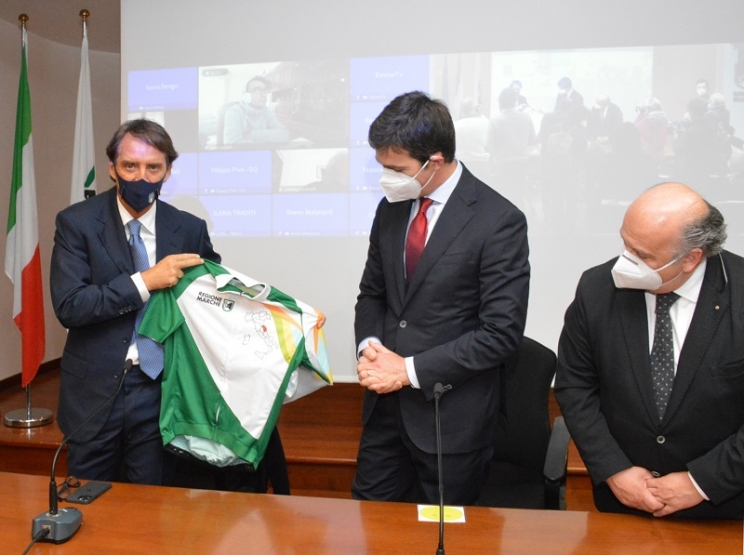 “Noi marchigiani siamo veramente molto felici che abbia accettato questa sfida di rilancio dell’immagine del nostro territorio. Un territorio bellissimo che a volta ancora ci stupisce, che regala emozioni straordinarie ma che non è sempre conosciuto – ha detto il presidente Francesco Acquaroli - Sicuramente l’immagine vincente di Roberto Mancini, da giocatore, allenatore e oggi da commissario tecnico della nazionale, può aiutare la nostra e la sua regione a diventare protagonista come lo è stato lui in campo e tuttora in panchina. Questa sfida coinvolge tanti aspetti, ma quello che mi ha colpito di più è la sua immediata disponibilità a collaborare con noi, perché la sua testimonianza può restituirci un’immagine all’estero e una consapevolezza in casa. In un momento così difficile dobbiamo puntare sulla bellezza e sulla capacità della nostra terra. Dobbiamo valorizzare il nostro patrimonio culturale e turistico per far riscoprire a tanti una regione straordinaria e ricca che ha molto da offrire sul fronte dell’attrattività e dell’accoglienza”.
