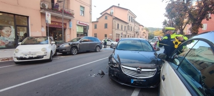 Per cause in corso di accertamento da parte della Polizia Locale, prontamente intervenuta sul posto, una Fiat Croma che usciva da via Leonardo Da Vinci nello svoltare a destra è entrata in collisione con una Opel Insigna. Lo scontro ha innescato un doppio tamponamento in cui sono rimaste coinvolte due auto regolarmente in sosta lungo la via. Si tratta di una Fiat Cinquecento, urtata dalla Croma, e di una Citroen C3 Pluriel, urtata dalla Insigna.