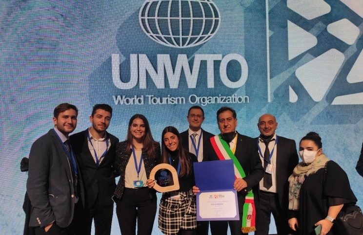 Venerdì, 03 Dicembre 2021 14:48 | Letto 903 volte Clicca per ascolare il testo San Ginesio tra i migliori villaggi turistici scelti dall'Organizzazione Mondiale del Turismo Ora è finalmente ufficiale: San Ginesio è stato insignito del riconoscimento di “Best Tourism Village 2021 ”, unico a rappresentare l’Italia, da parte dall’Organizzazione Mondiale del Turismo delle Nazioni Unite (UNWTO).Il sindaco di San Ginesio, Giuliano Ciabocco, accompagnato dal suo vice, Daris Belli, ha partecipato alla 24^ Assemblea generale UNWTO a Madrid dove alla presenza di oltre 500 delegati provenienti da tutti i paesi del mondo ha assistito alla cerimonia ufficiale che ha annunciato i migliori villaggi turistici 2021 nella prima edizione delliniziativa (pilota). “Ringrazio il Ministero del Turismo per aver supportato San Ginesio a rappresentare l’Italia nel mondo – ha dichiarato il sindaco Ciabocco –, un’occasione davvero unica e di straordinaria importanza che ci consentirà di far parte di una rete privilegiata per il rilancio e la valorizzazione del turismo nei nostri territori. Oggi, anche grazie al forte impulso dato dalla Regione Marche e dal Governatore Francesco Acquaroli, riusciamo finalmente a credere nei Borghi quali luoghi ideali e strategici per l’intero sistema turistico regionale e nazionale. Dedico questo riconoscimento alla comunità ginesina affinché sia un incoraggiamento a non smettere mai di credere nel luogo che si ama.”