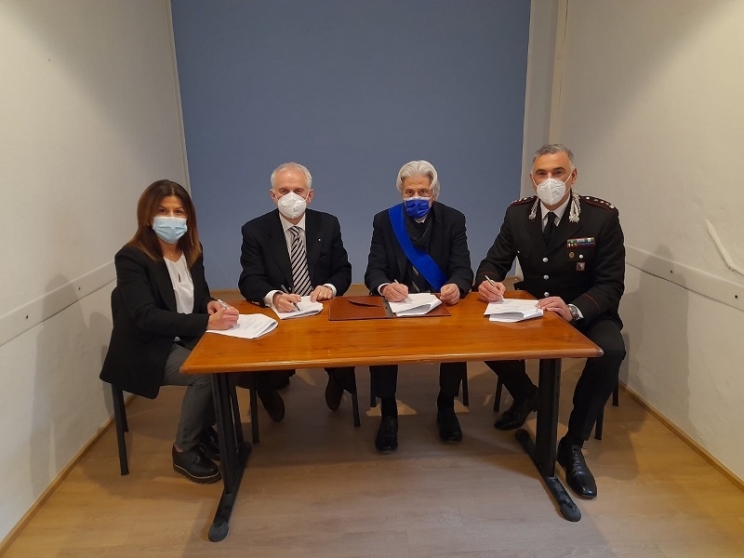 Martedì, 21 Dicembre 2021 19:18 | Letto 1277 volte Clicca per ascolare il testo Firmato l'atto di passaggio, i carabinieri di Camerino hanno la nuova sede Firmato a Camerino l’atto di passaggio di palazzo Sant’Angelo all’Arma dei carabinieri. A sottoscrivere l’atto formale di immissione in possesso, di stato d’uso e di consistenza della struttura come sede provvisoria del Comando Compagnia e Stazione Carabinieri il prefetto Flavio Ferdani, il presidente della provincia Sandro Parcaroli, il colonnello Nicola Candido, comandante provinciale dei carabinieri, e il geometra Francesco mariotti in rappresentanza del comune di Camerino. Il prefetto Ferdani ha sottolineato che questo trasferimento «ha consentito al personale dell’Arma dei Carabinieri di lasciare definitivamente la collocazione provvisoria all’interno dei moduli abitativi, per svolgere le funzioni di presidio e di sicurezza all’interno di una struttura che non solo costituisce un miglioramento tangibile delle condizioni di benessere del personale dell’Arma, ma restituisce al centro storico della città di Camerino un presidio di sicurezza fondamentale, nonché un segnale concreto di un inizio di rinascita nel cuore della città». «Il seguente atto costituisce il momento conclusivo di un percorso amministrativo - ha dichiarato il colonnello Candido - per il passaggio temporaneo dell’immobile dalla Provincia di Macerata all’Arma dei Carabinieri». Anche il presidente della provincia Parcaroli ha espresso il proprio assoluto apprezzamento: «Condivido la soluzione individuata che testimonia l’attenzione dell’Istituzione alle esigenze dell’Arma dei Carabinieri, come pure del territorio e dei suoi cittadini».