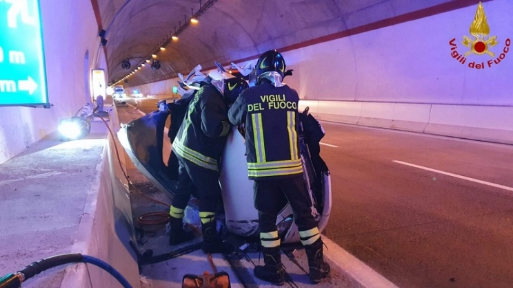 Tampona un mezzo pesante e si ribalta in galleria, trasportata a Torrette