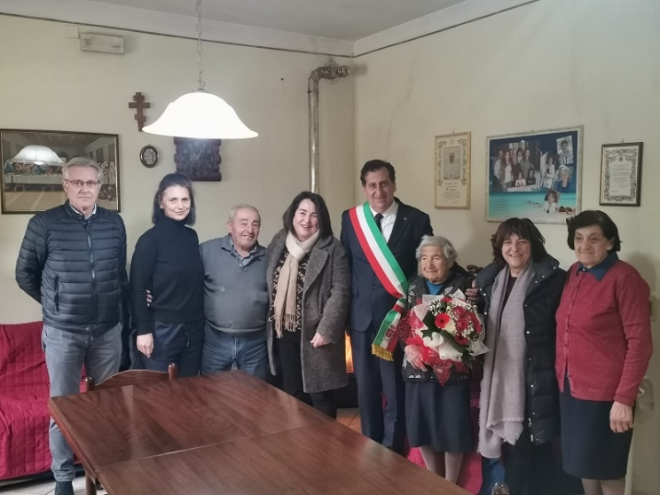 A festeggiare la ultracentaneria “nonnina” di San Ginesio non è voluto mancare il sindaco Giuliano Ciabocco che, accompagnato dagli assessori Mari, Alessandrini e dal consigliere Paletti, ha voluto consegnarle un omaggio floreale a ricordo di questo “speciale” compleanno.