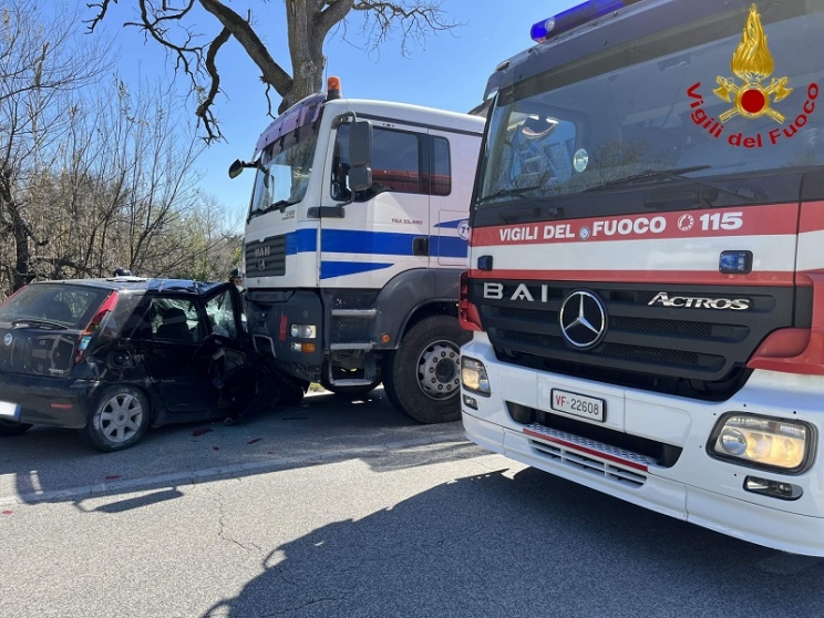 Per cause in corso di accertamento da parte della polizia stradale, giunta sul posto insieme ai sanitari del 118 e ai vigili del fuoco, un’auto guidata da una giovane donna di 28 anni si è scontrata frontalmente con un mezzo pesante.