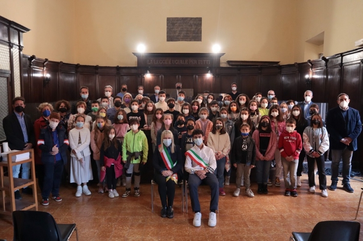 “Questi anni segnati dalla pandemia - è intervenuto in aula il sindaco dei ragazzi, Alessandro Bordo - non sono stati facili per noi e per i nostri docenti. Abbiamo dovuto trovare soluzioni per poter collaborare a distanza. Solo grazie a Meet abbiamo potuto incontrare il sindaco e l’assessore alla Cultura e presentarci. Abbiamo poi seguito altri progetti come “RicicliAMO Ragazzi” e partecipato alla inaugurazione dei cestini della differenziata posti nel giardino della nostra scuola. Ci siamo impegnati a partecipare alle celebrazioni delle feste nazionali come il 4 novembre e il 25 aprile”.
