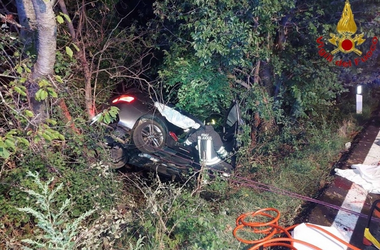 Un giovane di Tolentino di 21 anni ha perso la vita in seguito ad un terribile incidente stradale avvenuto nella notte sulla provinciale 502 nel territorio comunale di San Ginesio. Il dramma si è consumato in località Morichella. Il ragazzo si trovava a bordo dell'auto insieme ad altri tre coetanei. Erano circa le 2 del mattino quando, per cause in corso d'accertamento da parte dei carabinieri, il giovane che era alla guida ha perso il controllo del mezzo che è uscito di strada finendo contro una pianta ai bordi della carreggiata. Un impatto tremendo che non ha lasciato scampo al ventunenne tolentinate che era seduto dietro. Gravi le condizioni degli altri feriti trasportati in ospedale in ambulanza. Sul luogo dell'incidente sono intervenuti i vigili del fuoco di Macerata che hanno provveduto ad estrarre dalle lamiere la giovane vittima del tragico scontro e gli altri 3 amici feriti. C.C.