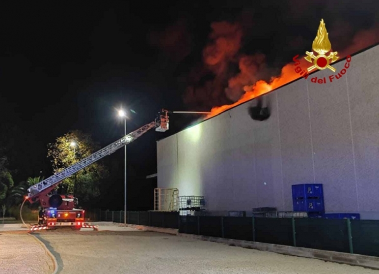 Il rogo, per cause in corso di accertamento, interessa la ditta Rimel che si occupa di smaltimento e riciclo di rifiuti speciali,