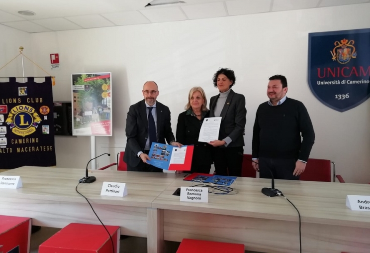 L'accordo di collaborazione è stato siglato questa mattina nella sala riunioni del rettorato di Unicam con gli interventi del rettore dell'Università di Camerino Claudio Pettinari, della presidente della Fondazione Lions per la Solidarietà del Distretto 108A Francesca Romana Vagnoni, del governatore distrettuale Francesca Ramicone e del direttore generale Unicam Andrea Braschi.