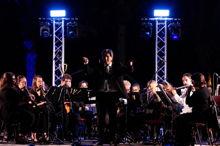 Nella suggestiva cornice offerta dalla Rocca Borgesca il suono dei fiati ha guidato attraverso il passato e il presente della musica italiana, partendo da quella napoletana, che iniziò a diffondersi al di fuori della Campania solo dopo l’Unità d’Italia, in una "Rapsodia" che raccoglie le melodie popolari più tipiche e celebri, molto orecchiabili, da cantare a voce spiegata, su testi spesso di argomento amoroso o sentimentale, caratteristiche tipiche della canzone melodica o “all'italiana”.