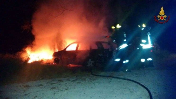 Urbisaglia, auto a fuoco nella notte