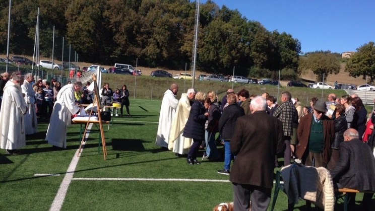 1 Novembre festa di Ognissanti. Un periodo nel quale tutti si ritrovano, molti ritornando anche nei luoghi di origine, per rendere omaggio ai propri cari defunti. Una festività quest’anno segnata nel territorio del maceratese dalla grave crisi sismica iniziata dallo scorso mese di agosto. Così le comunità colpite, che hanno avuto anche tutti i cimiteri lesionati e di conseguenza chiusi, si sono ritrovate a celebrare la messa nelle tende adibite a chiese o, come a Camerino, sul prato de Le Calvie dove l’arcivescovo Francesco Giovanni ha celebrato insieme ai sacerdoti della città in quella che ora è divenuta la sua cattedrale a cielo aperto. Un messaggio di speranza, quello rivolto dal vescovo ai suoi fedeli che ha invitato alla solidarietà e a vivere in pieno, pur nella provvisorietà, il senso della comunità. Un pensiero anche a coloro che stanno operando in favore di quanti che sono in maggiore situazione di disagio che in questo modo, ha sottolineato, vivono la loro Eucaristia anche se non possono partecipare alla messa.