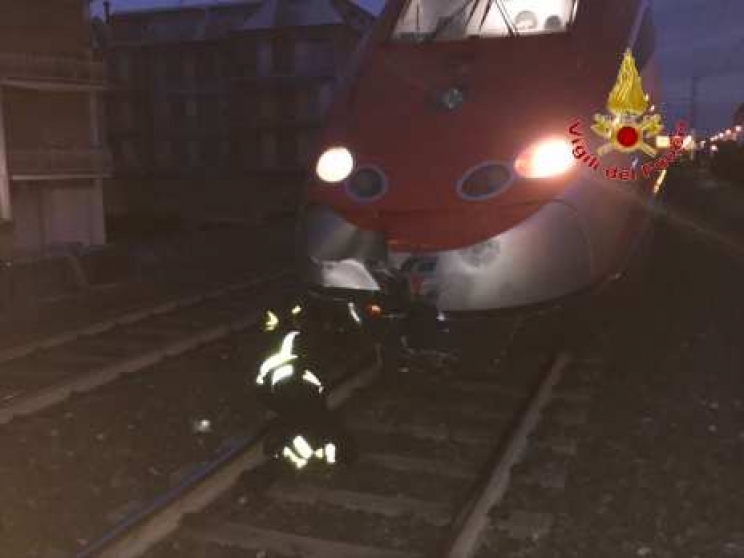 Gravissimo incidente ferroviario alle prime luci dell'alba a Civitanova Marche, in località Fontespina. Per cause al vaglio degli inquirenti una persona è finita sotto un treno a circa 600 metri dalla stazione civitanovese. Il corpo della persona, maciullato dal treno, è irriconoscibile e non è stato ancora possibile procedere all'identificazione, anche se sembra si tratti di un uomo di nazionalità extracomunitaria. La salma è stata recuperata dai vigili del fuoco e le cause del sinistro sono naturalmente al vaglio degli inquirenti. Il conducente del convoglio, sconvolto per l'accaduto, ha dichiarato di essersi improvvisamente trovato l'uomo sui binari e di non essere riuscito ad evitare l'impatto. La tratta ferroviaria è rimasta chiusa fino alle 10 circa in attesa dell'arrivo del magistrato per la rimozione del cadavere.