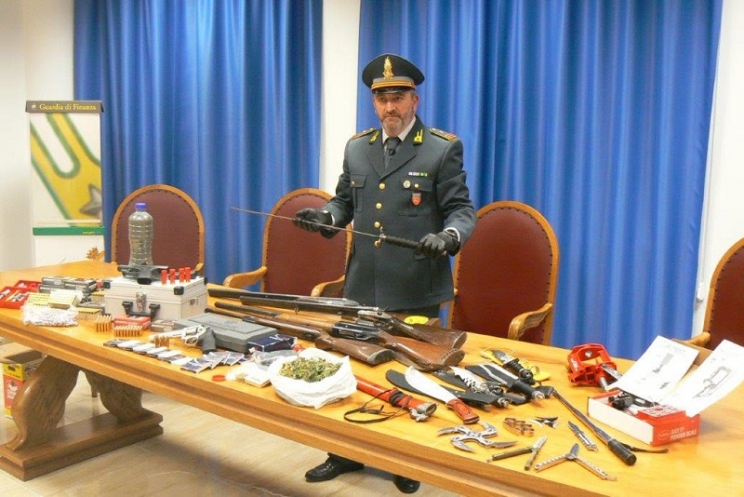 Nel corso della concomitante perquisizione eseguita presso il domicilio del responsabile, i finanzieri hanno altresì sequestrato 1,2 Kg. di polvere da sparo illegalmente detenuta e ritirato in via cautelare, armi da fuoco (due pistole, tre fucili e una carabina) e armi da “punta e da taglio” rinvenute nell’appartamento del responsabile, cittadino italiano, munito di licenza di porto d’armi per uso sportivo.