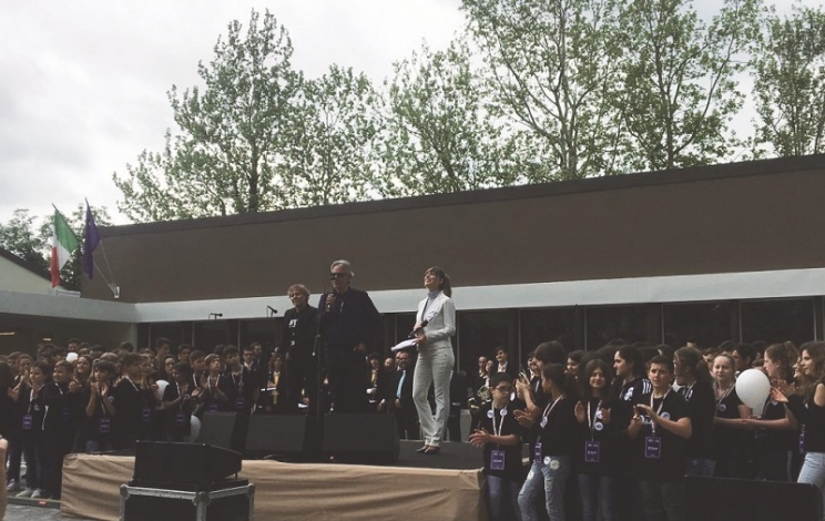Mercoledì 2 maggio è idealmente suonata la prima campanella presso la nuova scuola media “G. Leopardi” di Sarnano. Una giornata di festa per i cento ragazzi del luogo, che porta ancora, visibili, le cicatrici del terremoto, nelle strade e nel cuore dei suoi abitanti, per voltare definitivamente pagina. L’edificio scolastico, antisismico, ecosostenibile, tecnologicamente avanzato e dotato di servizi didattici, artistici e sportivi all’avanguardia, utili agli studenti ma anche all’intera comunità, è stato ricostruito nel tempo record di 150 giorni grazie all’impegno della Andrea Bocelli Foundation e della Only The Brave Foundation di Renzo Rosso. All'inaugurazione hanno preso parte, oltre al sindaco Franco Ceregioli, al Commissario alla ricostruzione Paola De Micheli, al Governatore delle Marche Luca Ceriscioli, i due fondatori Andrea Bocelli e Renzo Rosso insieme a note personalità dello spettacolo, tra cui il cantante Renato Zero.
