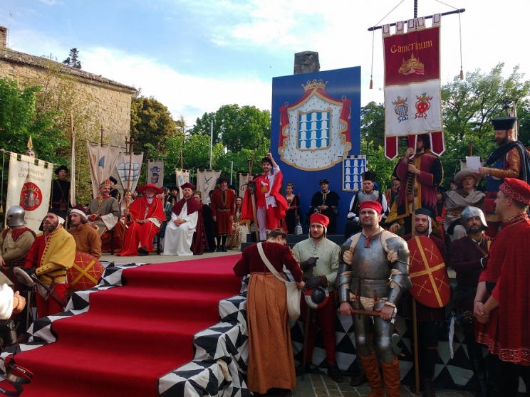 Spada a Sossanta. Palio a Di Mezzo. Conclusa con successo l'edizione 2018 della rievocazione medioevale di Camerino. Marco Francucci del terziere di Sossanta si è aggiudicato il trofeo della XXXVII Corsa alla Spada di Camerino. Primo al traguardo il giovane atleta del Cus Camerino, nella gara che ha visto piazzarsi al secondo posto Francesco Viti del terziere di Muralto; terzo è giunto Andrea Grelloni per di Mezzo, quarto Andrea Michiorri di Mezzo che, quasi sulla linea, ha superato Giuseppe Vastano di Sossanta, arrivato quinto. Poco prima la Staffetta Rosa era stata vinta dal terziere di Muralto con la giovane atleta Elena Paggi prima a tagliare il traguardo. Ogni terziere in sostanza ha portato a casa un successo, unitosi alla soddisfazione espressa dalla presidente dell'associazione Sandra Gentili, per l'ottima riuscita di tutta la manifestazione. Premi sono andati alle forze dell'ordine la cui azione nei vari ambiti su tutto il territorio, è costantemente rivolta alla popolazione ; l'omaggio ha in particolare riguardato i corpi dei Carabinieri, Guardia di Finanza, Polizia di Stato, Polizia municipale, Protezione Civile, Croce Rossa Italiana, Esercito.Premi anche alle atlete della 'Staffetta Rosa' e omaggio particolare all'atleta mezzino Andrea Michiorri per la sua decima partecipazione alla Corsa. In dono agli atleti un oggetto in vetro con incastonata la foto simbolo della manifestazione ritraente il fuoco, simbolo di fede, speranza e punto fermo della tradizione camerte. La Spada quest'anno era stata offerta da Banca Intesa San Paolo e realizzata dall'officina artigiana di Stefano Bellesi