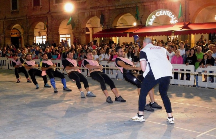 Dopo la disfida degli archi e delle balestre domenica scorsa, mercoledì la piazza del Popolo ha visto l’avvio delle gare valide per il Palio degli adulti: gli atleti si sono sfidati alla corsa coi sacchi e alla corsa con i trampoli, al gioco della brocca, e al tiro alla fune.