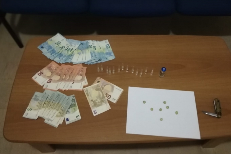 Le conseguenti attività svolte presso le abitazioni dei due tunisini hanno consentito di sequestrare 7 dosi di cocaina e 14 file di sostanze dopanti nonché € 1.140 frutto di illecite attività.
