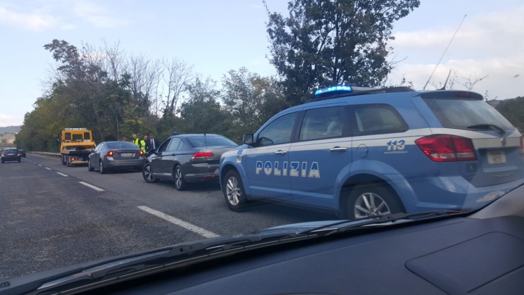 Pezzo di ferro in superstrada, danneggiata l’auto di una autorità pubblica