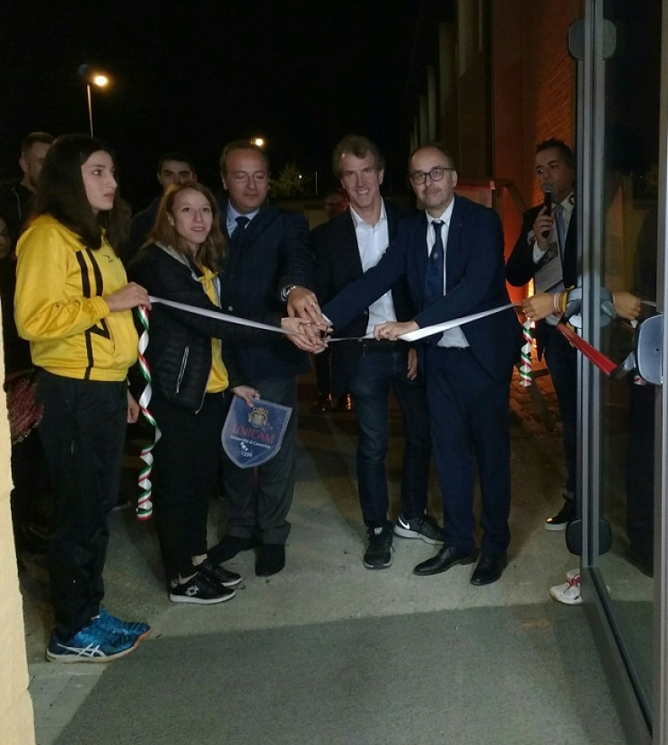 Il Centro Universitario Sportivo di Camerino amplia la sua offerta con l'inaugurazione di nuovi spazi e nuove attrezzature al Palazzetto "Drago Gentili" in loc. Le Calvie. Alla cerimonia , insieme alle autorità militari e civili, hanno preso parte il rettore di Unicam Claudio Pettinari, il presidente del Cus Camerino Stefano Belardinelli, il sindaco Gianluca Pasqui, la rappresentante degli studenti del Comitato sport universitario Agnese Marucci e il vicepresidente Cus Roberto Cambriani. Al taglio del nastro erano presenti anche un delegato dell'Organizzazione sportiva europea universitaria eil presidente nazionale dell'Associazione Tennnis Tavolo . Sviluppato sul lato posteriore del palazzetto, l'ampliamento si apre su un bellissimo panorama naturale. Una nuova scommessa per l''ateneo di Camerino e per il suo frequentatissimo Centro sportivo Universitario che, in un'unica area concentra una miriade di attività. Un polo di attrazione di tanti giovani universitari e non, fiore all'occhiello dell'ateneo e di tutto il territorio. " Tenevo molto a questa struttura - ha detto il rettore- mi sono augurato che fosse completata il prima possibile per allargare gli spazi a disposizione degli studenti. In continuo aumento la popolazione studentesca che si aggiunge alle tante persone che frequentano la palestra, per cui, rivedere la situazione si è reso necessario anche per ovviare ai turni troppo lunghi di attesa prima di poter utilizzare un'attrezzatura sportiva. Per accrescere il ruolo di eccellenza che ha questa palestra di Unicam, si è pertanto deciso per l'ampliamento e per l'acquisto di nuova strumentazione. Lo facciamo come ateneo insieme alla città, insieme al Cus, al Contram, insieme a coloro che ci hanno sostenuto con donazioni importanti perchè, siamo convinti che non solo erogando didattica e ricerca ma anche attraverso servizi come questo, gli studenti continueranno a scegliere l'università di Camerino. Oltre alla qualità dei nostri Corsi offriamo la possibilità di praticare delle attività sportive. Lo sport è salute, è carriera universitaria; lo sport è superare gli esami con la testa a posto".