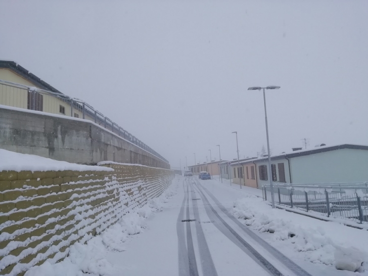 Risvegli con altri paesaggi, mezzi spazzaneve che a loro volta si muovono su percorsi ben diversi dalle strette strade del cuore della città, dove i motori in azione, sembravano penetrare le mura di casa. Svegliarsi immersi dal candore e dover spalare la neve davanti al portone, era una consuetudine di tutti gli inverni, compreso lo spargimento di sale che consentiva di camminare sicuri nei vicoletti. Pensieri banali e piccole ingenuità che comunque, riportano alla mente tanto del vissuto di Camerino e spiegano i tanti motivi del forte attaccamento dei suoi cittadini. Passando davanti alle aree sae innevate, ho respirato questa sottile malinconia. Me l’ha suggerita un’anziana nel ricordare che ha sempre avuto paura di scivolare sul ghiaccio, eppure, messi gli scarponi, è sempre uscita a fare la spesa da sola. Ho sentito che le mancava quel piccolo darsi da fare spicciolo per se stessa, una banale energia che ha sempre trovato in passato. Qualcuno si è chiesto il perché quei pochi fiocchi di neve postati sui social, abbiano fatto tanto rumore. Credo che sia il rumore di tanti ricordi che non si riesca a far spegnere.