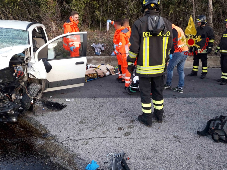 L’intervento della squadra dei Vigili del Fuoco è valso all’estricazione dei feriti dall’ abitacolo ed alla messa in sicurezza dell’autovettura.