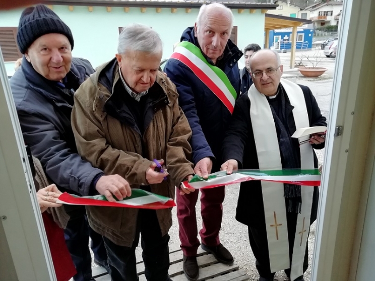 Mercoledì, 16 Gennaio 2019 19:27 | Letto 2785 volte   Clicca per ascolare il testo Ricostruire a partire dalle persone. Inaugurato il Centro Caritas di Muccia. Inaugurato a Muccia il nuovo centro della Caritas a servizio dell’entroterra. Sistemata sul piazzale tra via delle Piane e via Papa Giovanni XXIII, la struttura prefabbricata, è già operativa anche a servizio della vasta vicaria di Pieve Torina , rimasta senza una sede. Al taglio del nastro erano presenti il sindaco Mario Baroni, l’arcivescovo Francesco Massara, il direttore della Caritas diocesana don Luigi Verolini, il parroco di Muccia don Gianni Fabbrizi e numerosi operatori dellorganismo pastorale. Diviso in diversi ambienti, il nuovo centro Caritas  si presenta ben strutturato con spazi adibiti all’incontro e alla distribuzione di aiuti. “ I luoghi servono soprattutto per le persone- ha sottolineato l’arcivescovo Francesco Massara- Da qui dunque un’occasione d’incontro per chi ha bisogno, per crescere nella carità, nella conoscenza, nell’amore e nella testimonianza cristiana” . Con l’augurio che il nuovo centro rappresenti un’occasione di crescita per la comunità di Muccia e per tutto il comprensorio, Mons. Massara ha tenuto ad evidenziare l’importanza del ruolo degli operatori diocesani, quale testimonianza di fraternità e di vicinanza alle necessità delle persone.   Prima della benedizione dei locali, l’arcivescovo ha anticipato che grazie al coinvolgimento indiretto della Fondazione Beato Rizzerio, il responsabile dell’Unità di chirurgia ortopedica della Clinica Lami di Perugia Dr. Sergio Cecconi, metterà gratuitamente a disposizione la sua consulenza specialistica ortopedica a favore delle persone bisognose. Il Dr. Cecconi sarà presente una volta al mese nei locali del vicino ambulatorio medico, punto di riferimento anche per le necessità dei servizi di assistenza psicologica messi a disposizione dalla Caritas diocesana. Iniziative che, a detta del sindaco Mario Baroni, rappresentano dei concreti segni di prossimità ai bisogni della gente e contribuiscono a rinsaldare la comunità. “ Il centro Caritas di Muccia-ha dichiarato- è un ulteriore tassello per la ripresa e la ripartenza delle stesse attività che gli operatori della Caritas portano avanti sul territorio e il cui ruolo, è di fondamentale importanza nell’aiutarci a fare da filtro alle esigenze delle persone che il terremoto ha purtroppo accresciuto e aggravato. Ottenere risultati e migliorare le situazioni si può, solo se c’è la collaborazione di tutti; altrimenti non si potrà andare molto lontano”. Carla Campetella Nella foto sotto, il direttore della Caritas diocesana don Luigi Verolini e il sindaco di Muccia Mario Baroni