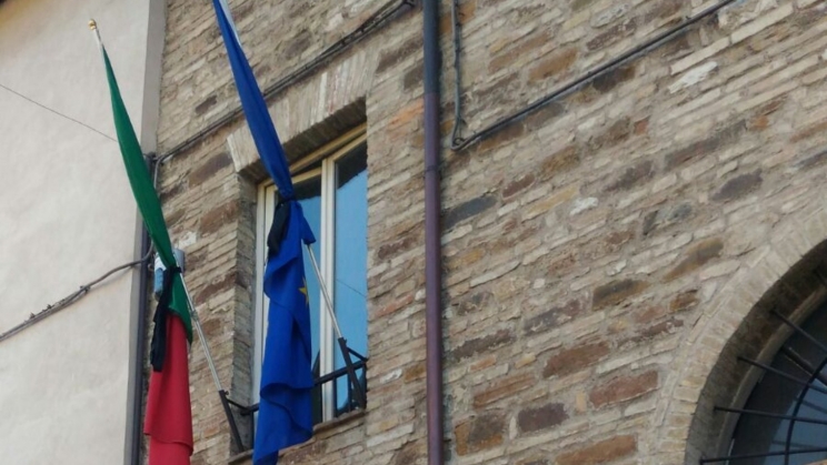 Bandiere a mezz’asta, nel Comune di San Severino, in occasione del Giorno del Ricordo. L’Amministrazione comunale ha invitato le scuole a tenere lezioni di approfondimento su quanto avvenne a cavallo del 1945. Soprattutto italiani, ben cinquemila, ma anche sloveni e croati, subirono atroci torture e vennero gettati, alcuni dopo essere stati fucilati altri ancora vivi, dentro le “foibe”, cavità naturali presenti sull’altipiano del Carso triestino ed in Istria. Fatti atroci che videro torturate e uccise più di diecimila persone in tutto, a Trieste e nell’Istria, per mano delle milizie e dei fiancheggiatori del dittatore Tito.