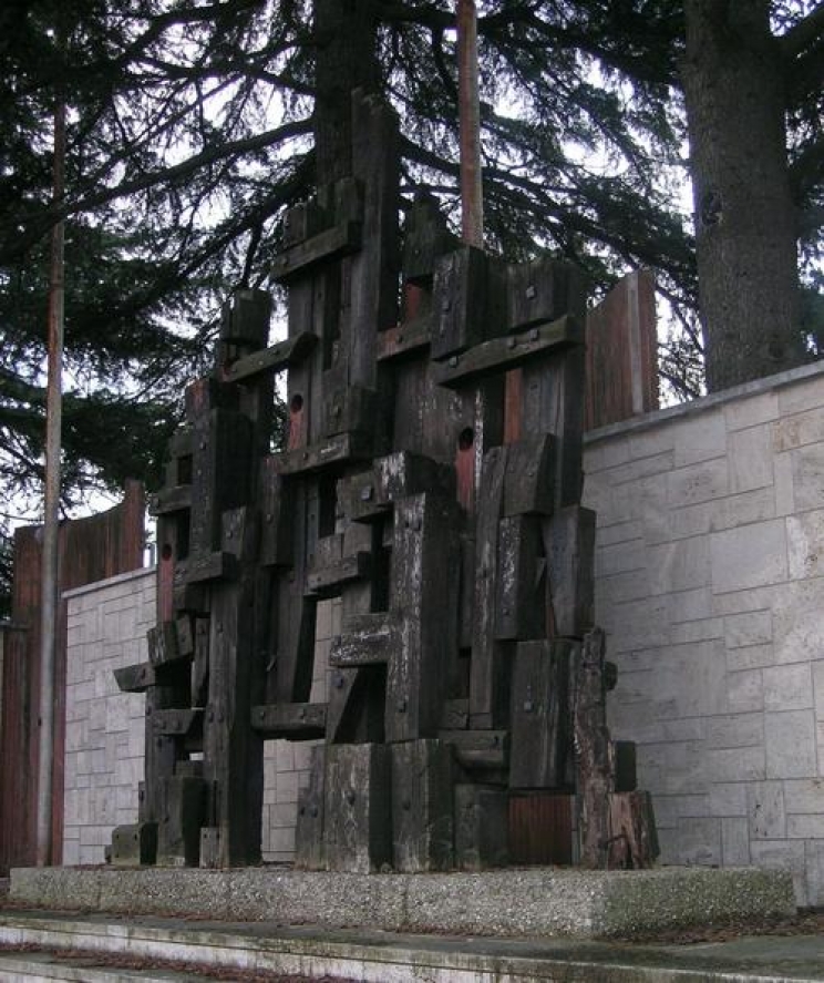 E’ di 11.102 euro, invece, la somma necessaria per il recupero del  Monumento ai caduti della Resistenza, interamente realizzato in traverse di legno di quercia connesse tra loro con bulloni in ferro. Nella metà superiore sono presenti cinque grossi fori dal quale fuoriescono strisce di smalto rosso ormai sbiadite. Il monumento è inserito in un complesso monumentale più ampio composto da dieci gradini e da alzate murarie in pietra di travertino. Nell’alzata sinistra campeggia la scritta in ferro “Ventesimo Anniversario della Resistenza”. Nella parte destra del monumento una lastra di marmo ricorda i nomi dei caduti in guerra. La struttura, a causa dello svuotamento delle parti affogate nel cemento e delle ultime scosse sismiche, tende ad inclinarsi pericolosamente all’indietro. Il legno si presenta annerito e sporco a causa delle numerose pitture protettive, dello smog e degli agenti atmosferici. Lo smalto rosso risulta ormai quasi totalmente sbiadito o assente. I dieci gradini e le parti in marmo presentano in alcuni punti una colorazione verdastra dovuta alla presenza di muschi e licheni, nonché un diffuso annerimento.