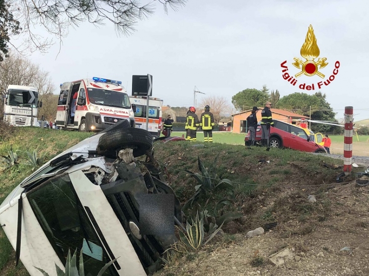 Un incidente stradale si è verificato lungo la strada provinciale 361 Septempedana nel territorio di Santa Maria in Selva. Per cause in corso di accertamento si sono scontrati un furgone Transit e una Mini Cooper condotta da un uomo di 70 anni. Sul posto, oltre alla polizia stradale per i rilievi di rito, i vigili del fuoco del comando provinciale di Macerata e le ambulanze del 118. Viste le condizioni dell'uomo i sanitari hanno richiesto l'intervento dell'eliambulanza che ha provveduto al trasporto dell'anziano all'ospedale regionale di Torrette per accertamenti. L'uomo, comunque, non è in gravi condizioni. Il conducente del furgone, un 60enne maceratese, è stato trasportato all'ospedale di Macerata. A causa dell'incidente la circolazione è stata rallentata con il formarsi di lunghe code.