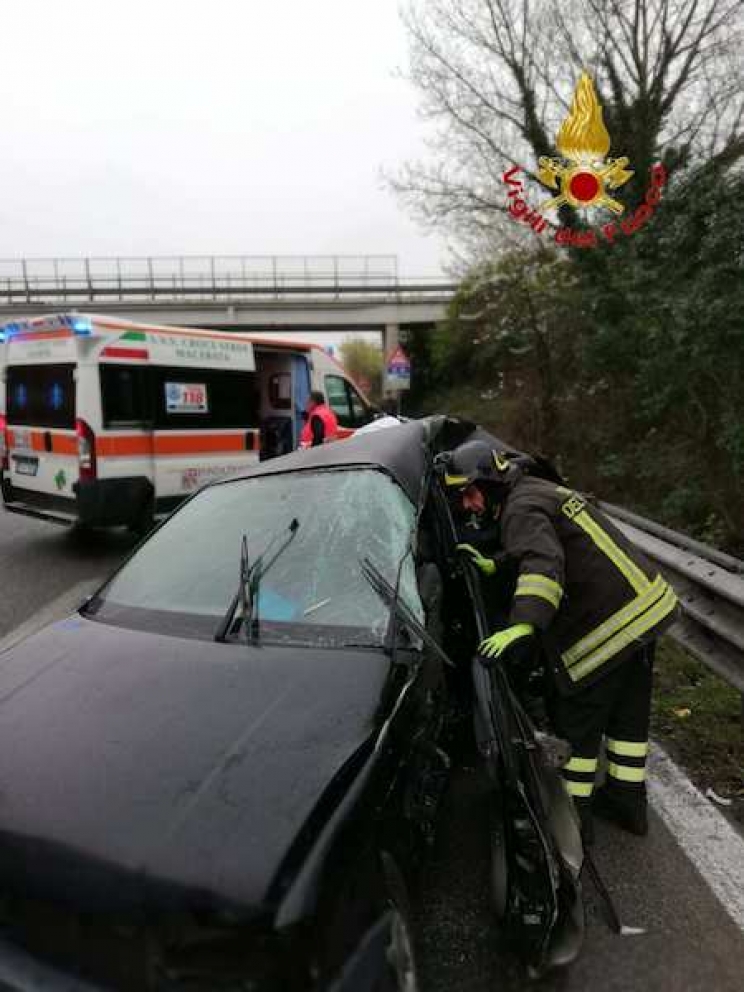 Brutto incidente stamattina alle 8:30 lungo la superstrada Val di Chienti. All’altezza di Corridonia, sulla carreggiata in direzione mare, si sono scontrate una Seat Arosa, un camion e un’altra macchina.