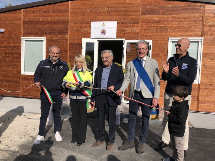 Con emozione e riconoscimento il sindaco di San Severino Rosa Piermattei ha inaugurato la nuova sede della protezione civile comunale, oggi pomeriggio. Un'opera attesissima, che mancava da due anni, realizzata dal dipartimento per oltre 142mila euro. Avrebbe dovuto essere presente il capo della Protezione Civile Angelo Borrelli, assente però per un grave lutto in famiglia. Al suo posto il dirigente Massimo La Pietra accompagnato dal dirigente regionale Davide Piccinini e dall'assessore regionale Angelo Sciapichetti. Prima del taglio del nastro, la santa messa e la benedizione del cardinale Edoardo Menichelli. "Rappresentare Borrelli in questa circostanza - ha affermato La Pietra - mi rende molto felice perché significa che siamo stati invitati a casa di qualcuno. E chi ha perso la casa sa che valore questo abbia. Essere a contatto coi volontari ci insegna sempre qualcosa e di questo vi ringrazio".