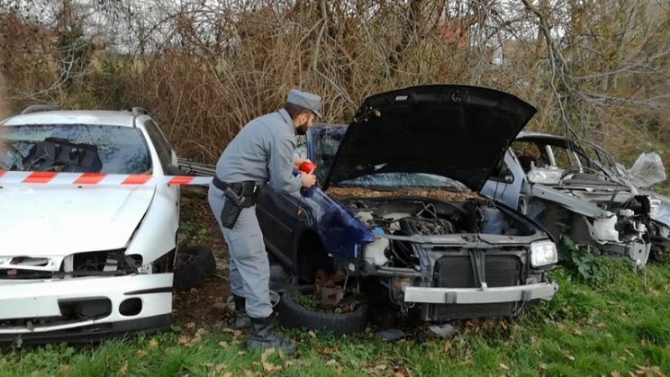 Traffico illecito di veicoli, 23 le persone indagate, sequestrati 21mila euro e 16 timbri falsi, oltre a 12 autoveicoli, 4 ciclomotori, un’officina abusiva e un deposito di pezzi di ricambio. E’ il bilancio dell’operazione messa a segno dai carabinieri forestali nell’ambito di una indagine riguardante attività illecite di traffico di veicoli, gestione e combustione di rifiuti speciali, da parte di alcuni soggetti di nazionalità serba, domiciliati a Jesi. I militari hanno fermato due stranieri, un lituano e un serbo, trovati in possesso di 21.500 euro in contanti appena importati dall’estero e 16 timbri falsi utilizzati per contraffare documentazione fiscale di trasporto dei veicoli. Tutto ha avuto inizio a seguito di un primo intervento dei Carabinieri Forestali per la combustione illecita di una roulotte. I militari, insospettiti dalla presenza nel sito di numerosi veicoli smontati, hanno eseguito una perquisizione delegata che ha consentito di rinvenire e sequestrare un’officina abusiva e locali dove erano accumulati centinaia di ricambi di autoveicoli. Complessivamente le prime attività di perquisizione, a carico di quattro persone di nazionalità serba, hanno portato al sequestro di 12 autoveicoli, 4 ciclomotori, un officina ed un deposito di pezzi di ricambio, unitamente a targhe, certificati di proprietà e carte di circolazione detenuti abusivamente dal proprietario dell’area.