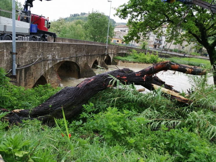 Fiume Potenza: ripulito dai tronchi portarti a valle dalle piogge