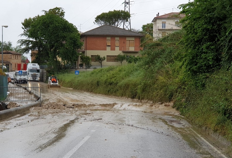 Giovedì, 30 Maggio 2019 09:22 | Letto 1207 volte Clicca per ascolare il testo Tolentino, si lavora per riaprire le strade allagate Si lavora già da stamattina per riaprire il tratto di strada in contrada Piani Bianchi a Tolentino che, a seguito delle piogge di ieri pomeriggio, è stata interessata da una abbondante frana.Il manto stradale è completamente riccoperto di fango e terra, arrivati fino alla pista ciclabile dallaltro lato della carreggiata.È per questo che, anche mattina, un breve tratto di strada vicino al Ponte del Diavolo è stato chiuso per permettere ai mezzi di rimuovere il fango e i detriti.Purtroppo però la pioggia continua a cadere incessantemente e non è escluso che i disagi proseguano anche nella giornata odierna.GS